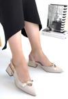 Butik Rewat Bej Cilt Topuklu Ayakkabı