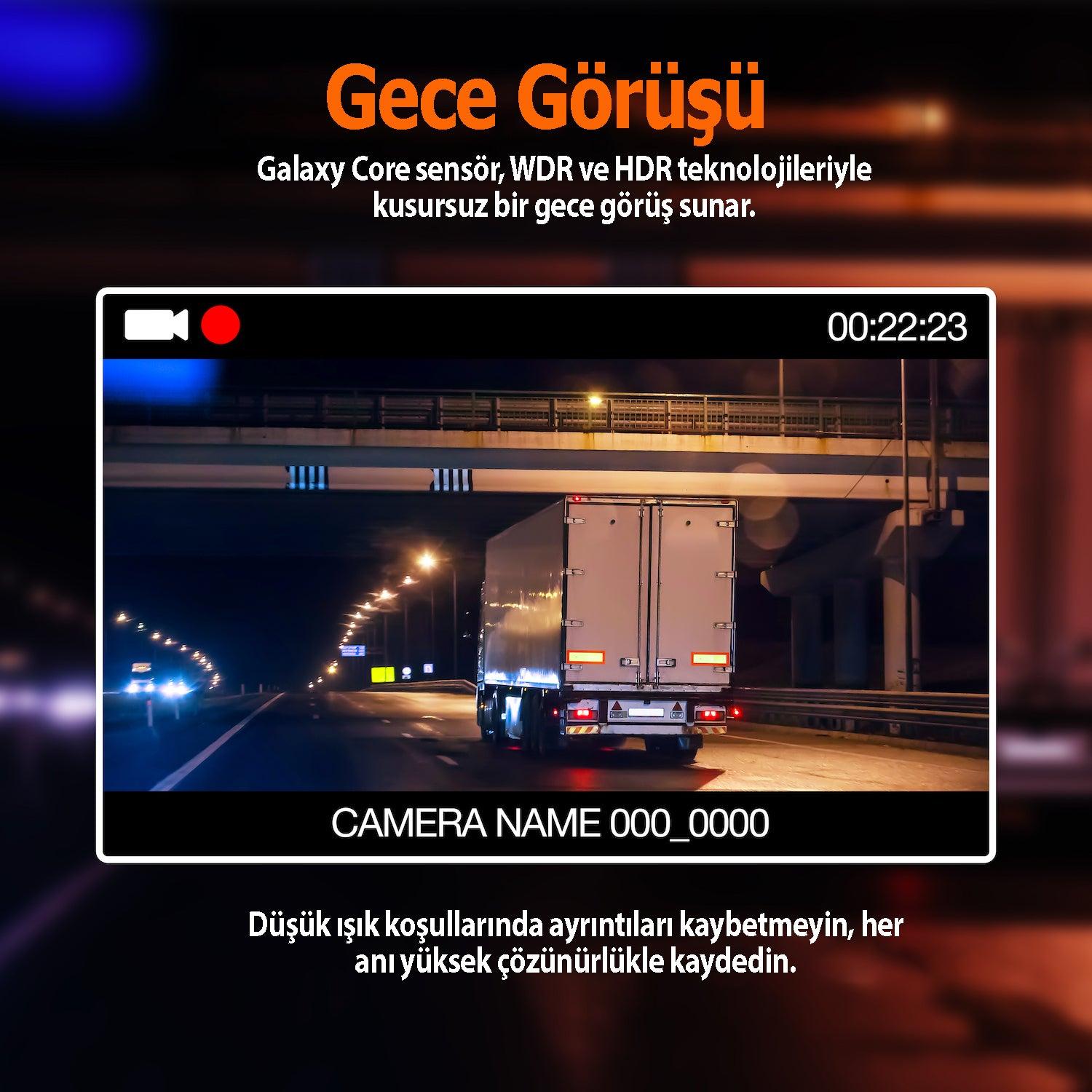 G-sensörü sayesinde, herhangi bir çarpışma veya darbe algılandığında kayıtlarınız otomatik olarak kilitlenir ve silinmeye karşı korunur. Ayrıca, döngü kayıt özelliğiyle en eski kayıtlar otomatik olarak silinir ve yeni kayıtlar için her zaman yer açılır. Önemli anlarınız daima güvende olur.