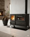 Tamamen dökümden üretilmiş geniş yanma odası, ısının daha uzun süre tutulmasını sağlar ve yüksek verimli bir yanış sunar. Fırın bölmesi sayesinde çaydanlık, yemek veya ekmek ısıtmak için de pratik bir kullanım alanı oluşturur.