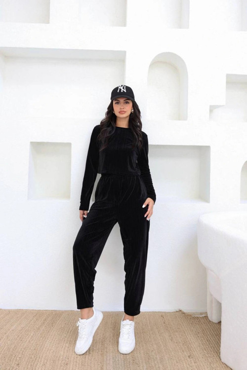 DESENLİ BLUZ - PANTOLON TAKIM SİYAH