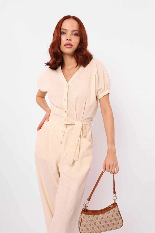 Kemerli Balon Kol Tulum Ekru