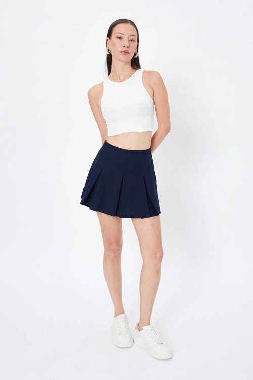Pileli Etek Lacivert