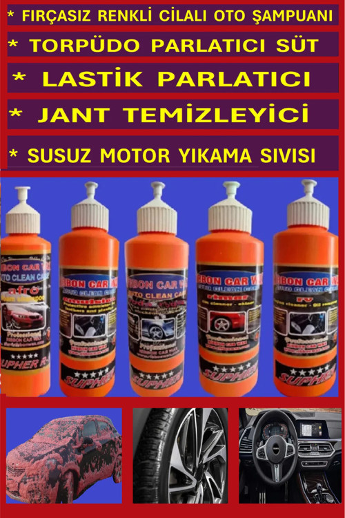 Ribbon Car Wax Fırçasız Cilalı Şampuanı+Torpido Sütü+Lastik Parlatıcı+Jant Temizleyici+Susuz Motor Yıkama (5 Liset)