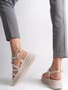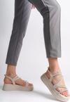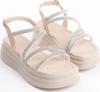 Rıley İnce Tokalı Taşlı Şeritli Ortopedik Taban Kadın Sandalet - Kt Krem