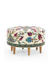 Farklı desenleri ile kullanıldığı ortama şıklık katan ahşap puf ahşap ayakları sayesinde kullanıldığı zemine zarar vermez. 65 CMx65 CM boyut ve 40 CM yükseklik ölçülerine sahiptir.; silindir puf modelinin alt kısmı, rahatlıkla silinebildiği için hijyeni kullanım sağlar. Ayrıca kumaş yapısı silinmeye uygun olduğu için nemli bir bez kullanarak üst yüzeyini de temizleyebilirsiniz.; 32 DNS soft sünger kullanılarak tasarlanan ahşap ayaklı puf ses çıkarmadan kullanılmaya uygunluk gösterir. Soft sünger kullanıldığı için oturum yumuşaklığına olanak tanır.; Ahşap iskeleti ile oldukça kullanışlı olan etnik desenli puf kullanıldığı alana dekoratif şıklık katar. Bu sebepten dolayı yatak odası, salon, oturma odası, çocuk odası, genç odası, ofis gibi birçok alanda kullanabilirsiniz.; 6 ahşap ayağı darbelere karşı dayanıklı bir yapı sergiler. Bu nedenle yüksek ağırlık taşıma kapasitesi ile öne çıkar.; Ahşap iskeleti suya ve neme karşı dayanıklı olduğu için kabarma ve şişme yapmadan uzun süre kullanımı gerçekleştirilir. Herhangi bir kurulum yapmanıza gerek olmadan direkt olarak yerleştirebilirsiniz.; E1 kalite standartlarına uygun olan materyaller kullanılarak üretilmiştir. Ayrıca antibakteriyel özellikli materyaller sayesinde güvenli kullanımı destekler.; Baskılı kumaş polyester ve pamuk karışımı olduğu için uzun süre canlılığını korur.;