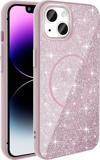 Riseofglc İphone 11 Kılıf Magsafe Şarj Özellikli Parlayan Simli Zore Okso Kapak - Pembe