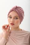 Uniquetrenders Kadın Lüks Sandy Kumaş Bağlamalı Pileli Tesettür Bone Pudra Standart - Image 1