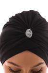 Sade ve şık tasarımıyla her türlü tesettür giyimle uyum sağlayan düz desenli Sultan taşlı bone