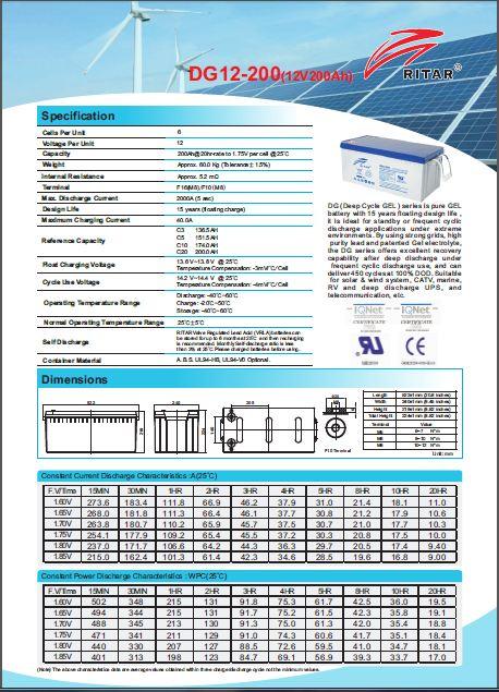 Ritar DG Serisi 1500 Çevrim Ömrüne sahiptir. Solar sistemlerde kullanmak için üretilmiştir.