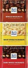 RITTER SPORT WHOLE HAZELNUTS SERIES 100GR. - 3 LÜ SET BİTTER - SÜTLÜ - BEYAZ FINDIKLI