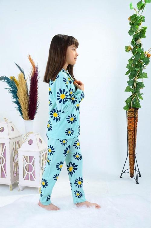 Riysgiyim Çiçek Baskılı Kız Çocuk Pijama Takımı