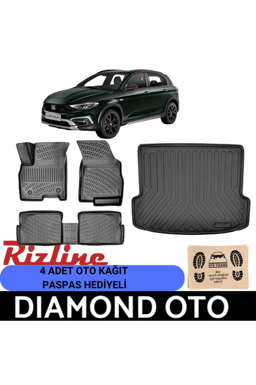Fiat Egea Cross'un geniş iç mekanını korumak için tasarlanmış, su geçirmez özelliğiyle dikkat çeken tamir kitli paspas seti.