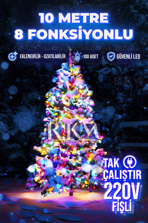 8 fonksiyonlu 100 ledli 10 m fişli led dekor lambası Rgb dekoratif yılbaşı ağacı ışığı lambası