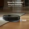 Paspas modüllerinin 10 mm* yüksekliği Kısa tüylü halı ve kilimlerinizin temizlik sırasında ıslanmasını önlemek için paspas modülleri 10 mm (0,4 inç) kadar yükseltilebilir. Çapraz bulaşmayı önlemek için paspasları kaldırır. Bunu, yeniden şarj etmek veya yıkamak için geri döndüğünde veya yıkadıktan sonra silmeye devam ettiğinde yapar. Havalandırmayı sağlamak için paspasları kaldırır. Robot şarj olurken, paspasların havalandırılmasını sağlamak ve küf ve kötü kokuları önlemek için paspaslar kaldırılır.