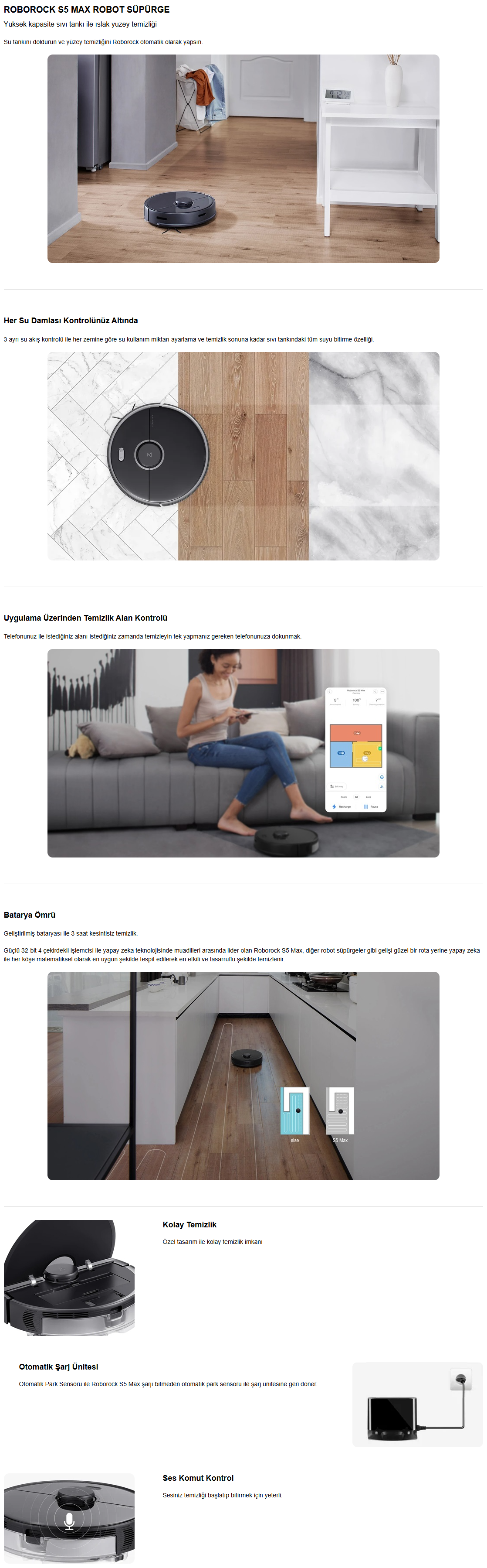 (Evofone Garantili) Özellikler: Model: S5 max Malzeme: Abs, Diğer fonksiyon paspas,ıslak,emme,süpürme,emici boşaltma,vakum Program fonksiyonu: Evet Kendiliğinden şarj ediliyor: Evet Sanal duvar: Evet Zemin çeşitleri: Halı,seramik karo,mermer zemin,shag halı,seramik zemin,ahşap zemin Toz kutusu Kapasitesi: 460ml Su tankı kapasitesi: 290ml Emme (pa): 2000pa Gürültü: 60dbgüç: 58w Gerilimi (v): 14.4v Renk: Beyaz