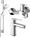 A5A307EC0K kodlu Roca Estreia Lavabo Bataryası, A5A027EC0K kodlu Roca Estreia Banyo Bataryası ve A5B247CC0K kodlu Roca Aurea Sürgülü Duş Seti, 2 Akışlı (Çap 10 cm) ürünlerinden oluşan Roca ürün setidir.