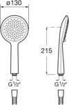 El duşu çift fonksiyonlu olup yıkama çevresi 1000 mm'dir.