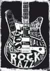 - Stil: Siyah beyaz müzik temalı poster – elektro gitar ve kelime tasarımı