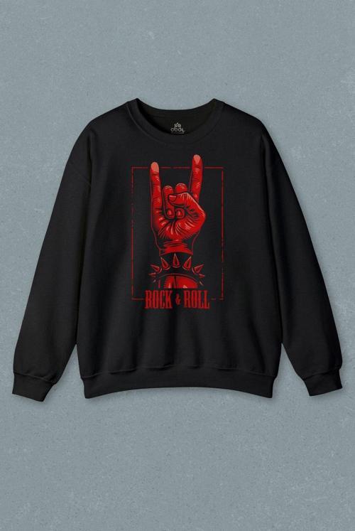 Rock'n Roll Music İşareti Baskılı Sweatshirt