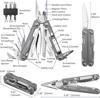 27’si 1 Arada Multitool: Bu multitool, çok sayıda görev için geniş bir araç yelpazesi sunar. 1.5 mm düz ve Philips tornavidalar, özellikle dijital kameralar, aksesuarlar ve gözlük gibi hassas cihazlar için idealdir. Ayrıca yaylı büyük makas, testere, kanca uçlu tırtıklı bıçak gibi ek fonksiyonlara sahiptir.