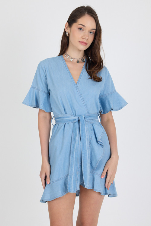Gardırobunuzda mutlaka yer vermeniz gereken bu kruvaze denim elbise, tarzınıza sofistike bir dokunuş katacak.