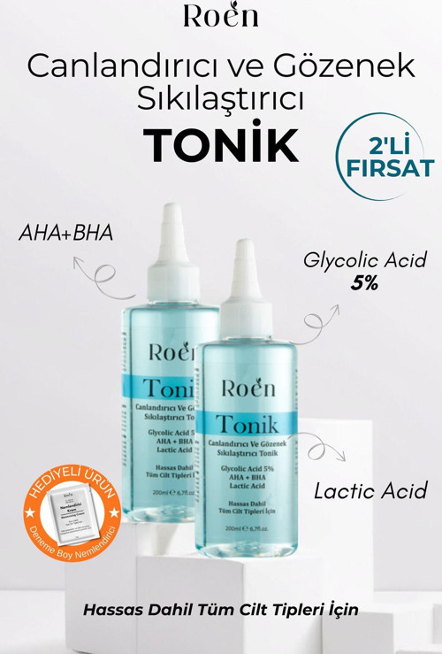 Roen Tonik, Aha, Bha, Laktik Asit, Glycolic Acid, Canlandırıcı Ve Gözenek Sıkılaştırıcı Tonik (200 Mlx2)