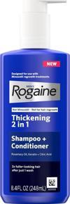 Erkekler için tasarlanan Rogaine Saç Kalınlaştırıcı 2'si 1 Arada Şampuan ve Saç Kremi, düzenli saç bakım rutininizin bir parçası olarak kullanıldığında, saç uzama bakımlarını desteklemeye yardımcı olur. Rogaine'in bu ürünü, minoksidil içermeyen formülüyle öne çıkar.