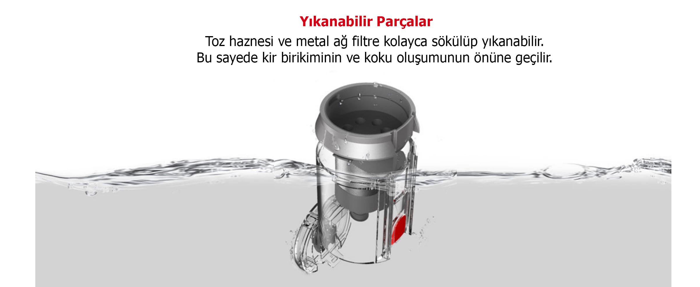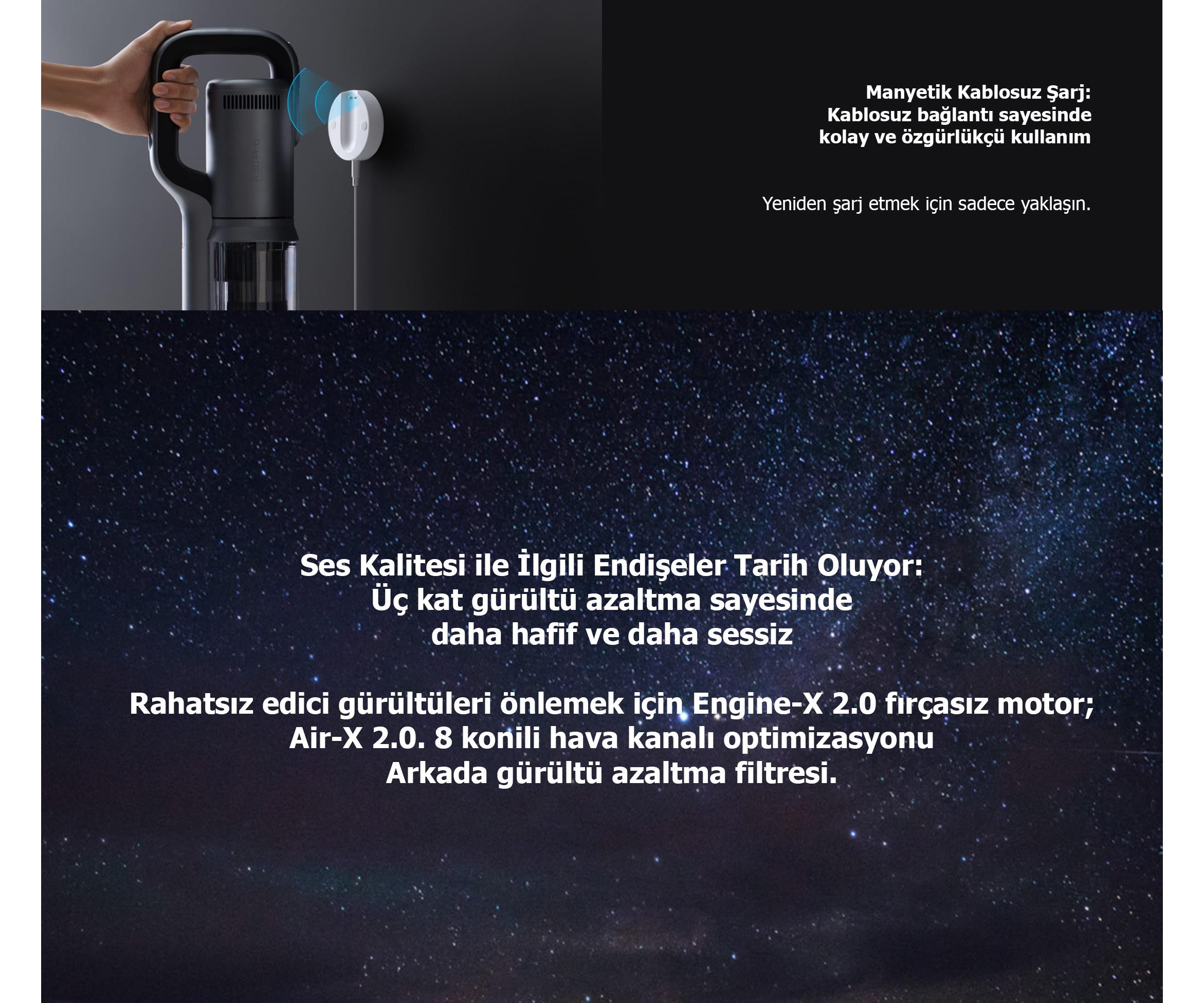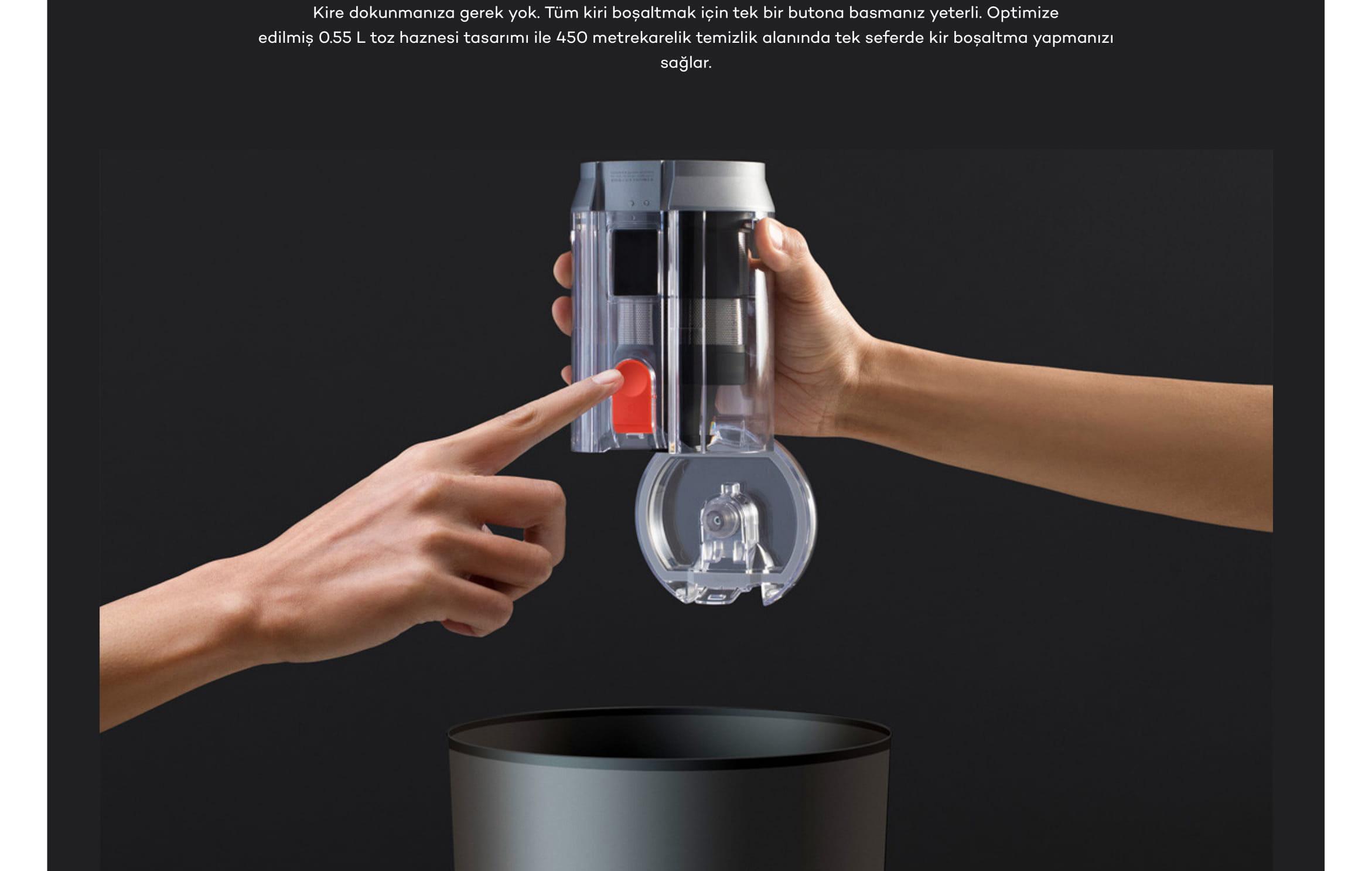 Dikey süpürge, Air-X 2.0 hava - toz ayırma sistemi ile fark yaratıyor. Sistem tasarımında 8 adet konili ayırma siklonuna ve 8 adet paralel tornadoya yer veriliyor. Çok yönlü fayda sağlayan sistem, dikey süpürgenin çalışma performansını en üst seviyeye çıkarıyor. Hava kanallarının tıkanması önleniyor ve emiş gücü sürekli maksimum düzeyde kalıyor. Toz, ayrılarak toz hanesine gönderildiği için sık biçimde filtre temizleme durumu ortadan kalkıyor. Kullanıcılar sadece tek düğmeye basarak ve kire temas etmeden 0.55 litre hacmindeki toz hanesini boşaltabiliyor.