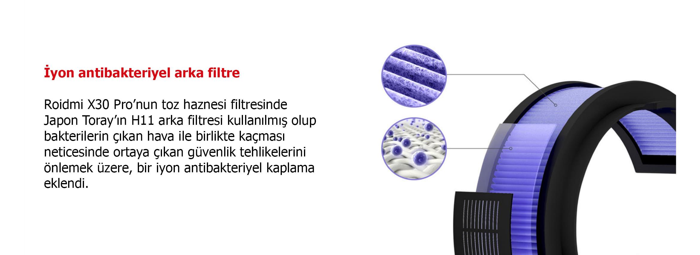 Yüksek verimli HEPA (High Efficiency Particulate Air Filter) filtre, havayı toz, polen, bakteri, asbest, aerosol ve virüslere karşı etkili biçimde koruyor. Solunan havada yer alan toz ve partiküllerin temizlenmesine olanak tanıyor. Kuru olarak temizlenmesi gereken HEPA filtrede biriken tozlar, kullanıcılara sunulan özel fırça aracılığıyla kolayca gideriliyor.