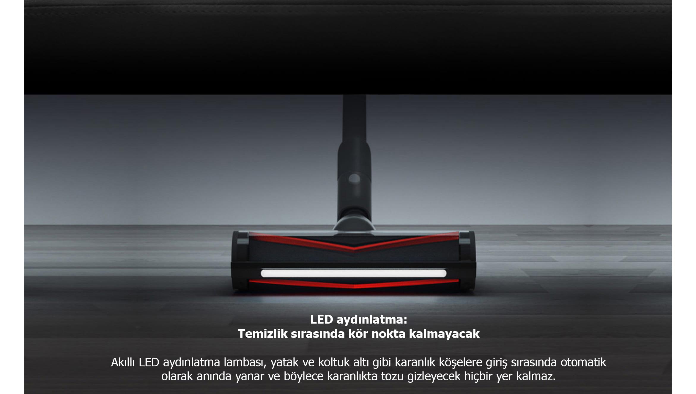 Akıllı LED aydınlatması bulunan Roidmi X30 Pro kablosuz şarjlı dikey süpürge, temizlik yapılırken karanlık noktaların net şekilde görülmesine olanak sağlıyor. Kullanım konforunu yukarını taşıyan LED lambalar, süpürge karanlık alana girdiği sırada otomatik olarak yanıyor. Böylece kullanıcılar, temizlik sırasında tozlu kalmış hiçbir noktayı gözden kaçırmıyor.