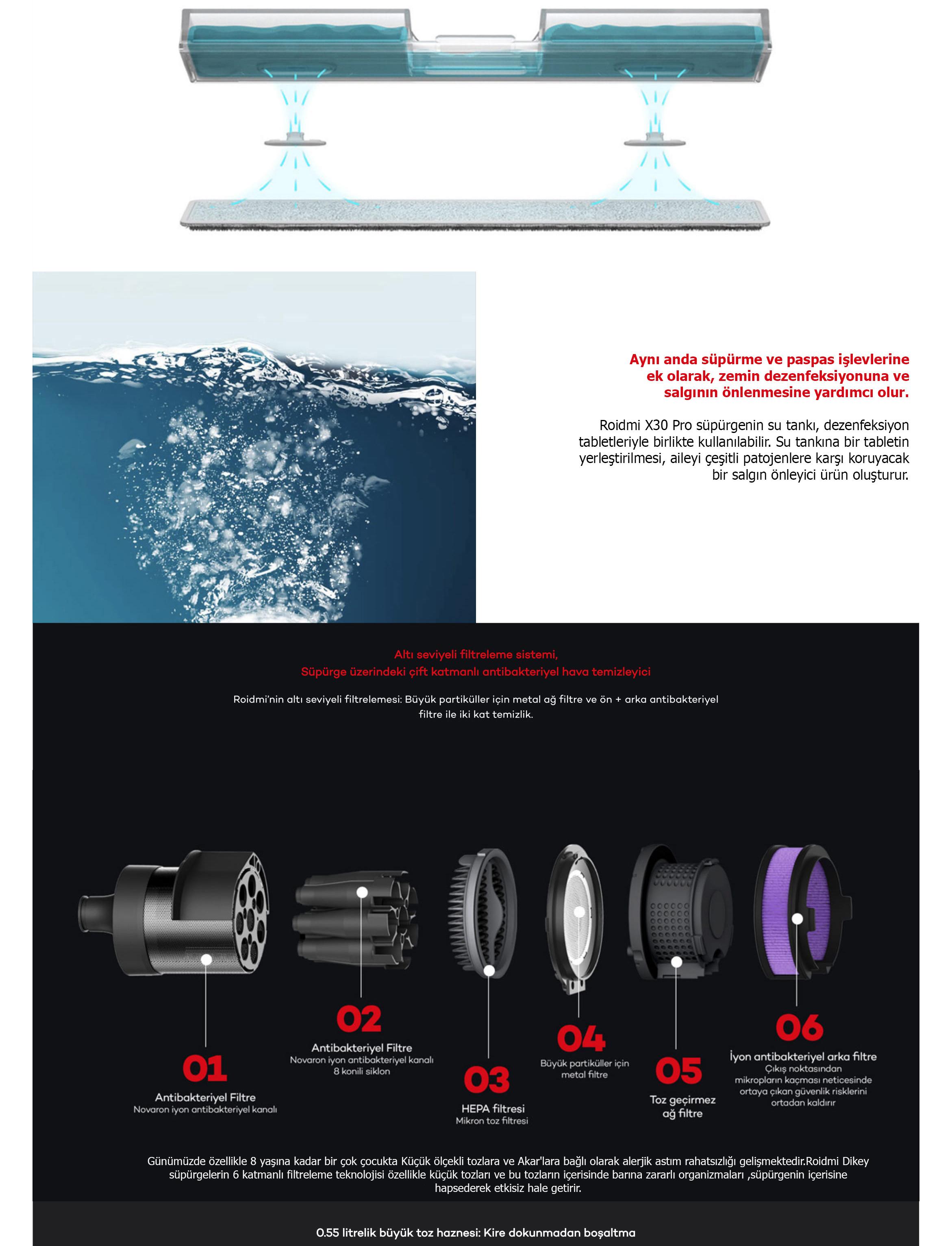 Yenilikçi bir anlayışla dizayn edilen Roidmi X30 Pro 28.8V kablosuz şarjlı dikey süpürge, ürün seçimi yaparken performansı ve kullanım konforunu ön planda tutan kullanıcılar tarafından tercih ediliyor. Özel teknolojileriyle dikkat çeken çok yönlü dikey süpürge, etkili ve pratik alan temizliğine dair zengin seçenekler sunuyor. Süpürme ve paspas işlemleri bir arada gerçekleştirilebiliyor.