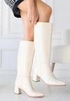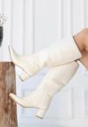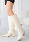 Preshley Kadın Carina Krem Cilt Döner Fermuarlı 8 Cm Platform Topuklu Diz Altı Çizme