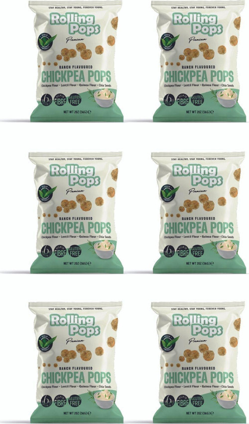 Rolling Pops 56G Gluten Free Vegan Ranch Flavoured Cips Seti 6 Adet