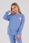 Açık indigo rengiyle dikkat çeken bu takım, 5-6 yaş aralığındaki kız çocukları için idealdir.