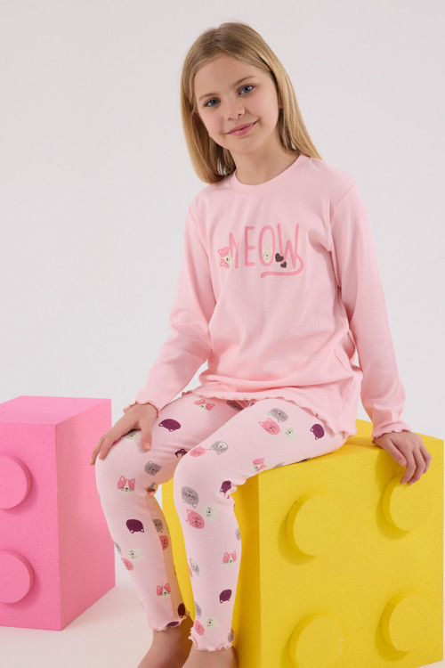Açık pembe rengiyle dikkat çeken bu takım, 3-4 yaş arası kız çocukları için özel olarak tasarlanmıştır.