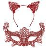 Kırmızı Dantel Kedi Kulaklı Maske ve Taç Seti – Şık Parti & Maskeli Balo Aksesuarı