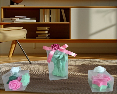 Ayder Online Satış Romanyik aşıklar ve yıldız gül görünümlü Kokulu Doğal pembe yeşil renk 3 lü Dekoratif mum