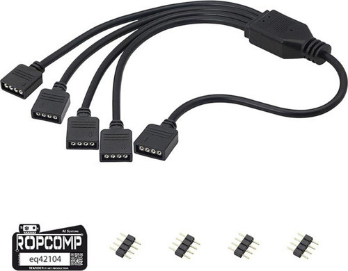 Ropcomp 4-Pin RGB Splitter, LED şeritleriniz veya RGB fanlarınızı tek girişten dört çıkışa çoğaltarak daha fazla cihazı aynı kontrol ünitesine bağlamanızı sağlar.