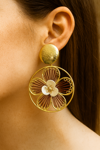 BlackCraft ​Gümüş Sallantılı Gold Çiçek Kadın Küpe (BC-EA3F9B) - Image 1