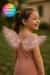 Toyfest Rose Renk Işıklı Melek Kanadı Çocuk Kostüm Aksesuarı Şeffaf Parlak Işıltılı Kanat - (3 - 7 Yaş)