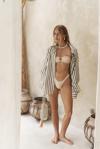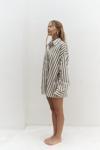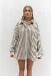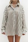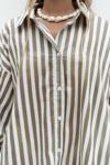 Pamuklu iplikten üretilmiş oversize çizgili gömlek. Yaka detaylı ve manşetli uzun kollu.