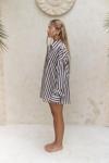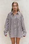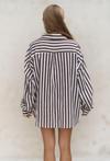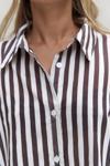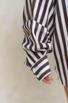 Pamuklu iplikten üretilmiş oversize çizgili gömlek. Yaka detaylı ve manşetli uzun kollu.