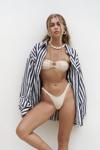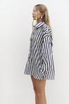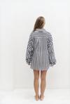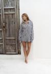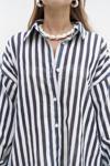 Pamuklu iplikten üretilmiş oversize çizgili gömlek. Yaka detaylı ve manşetli uzun kollu.