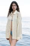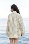 Pamuklu iplikten üretilmiş oversize çizgili gömlek. Yaka detaylı ve manşetli uzun kollu.
