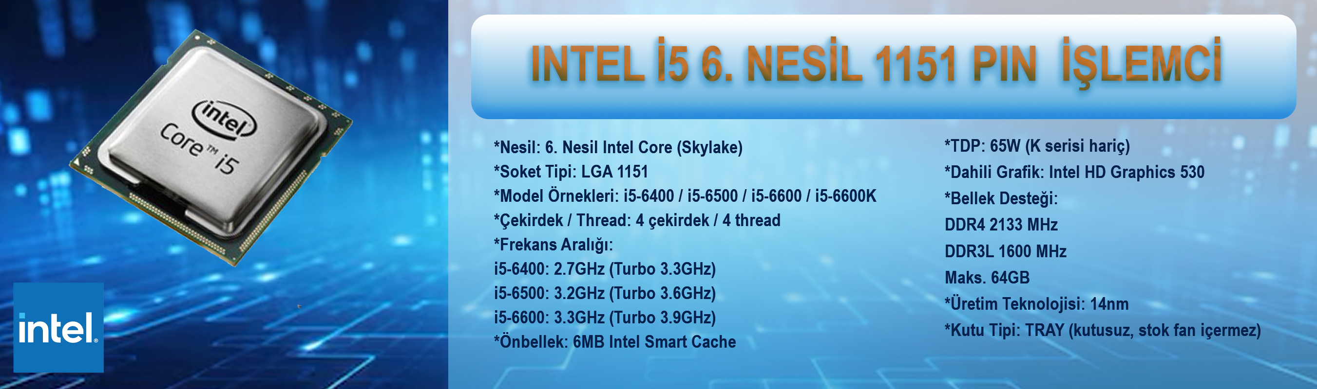 Intel’in 6. nesil i5-6500 işlemcisiyle donatılan bu sistem, giriş–orta seviye oyun performansı, günlük kullanım ve ofis çalışmaları için dengeli ve akıcı bir yapı sunar.