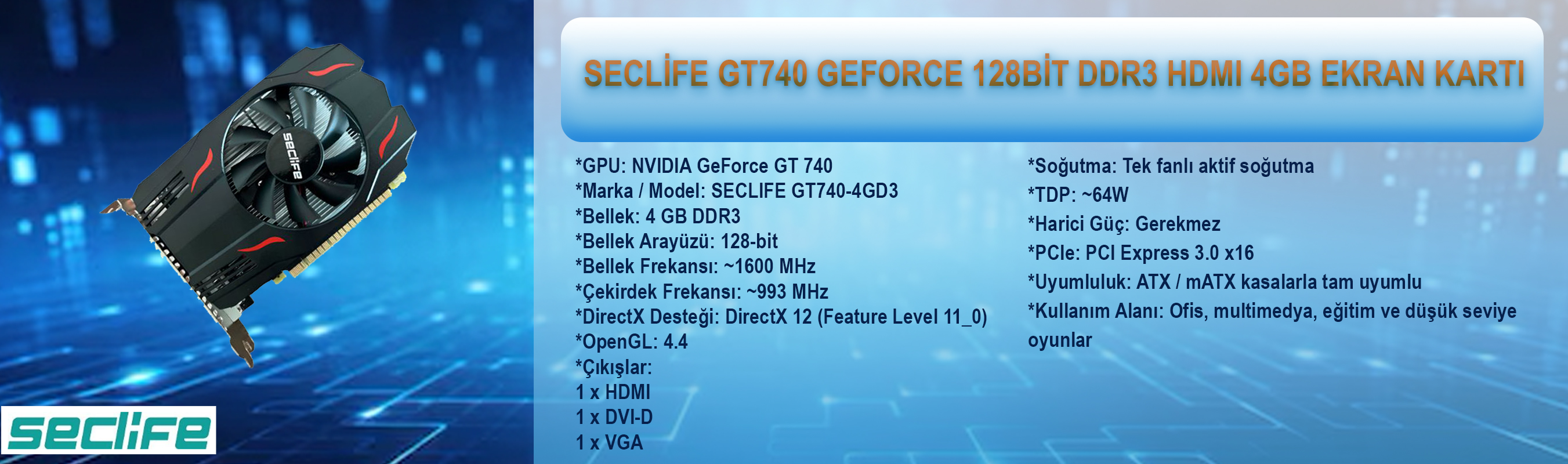 4GB GT740 ekran kartı, e-spor oyunlarında yüksek FPS değerleri sunan ve modern oyunlarda düşük–orta ayarlarda oynanabilir performans sağlayan uygun fiyatlı bir grafik çözümüdür.