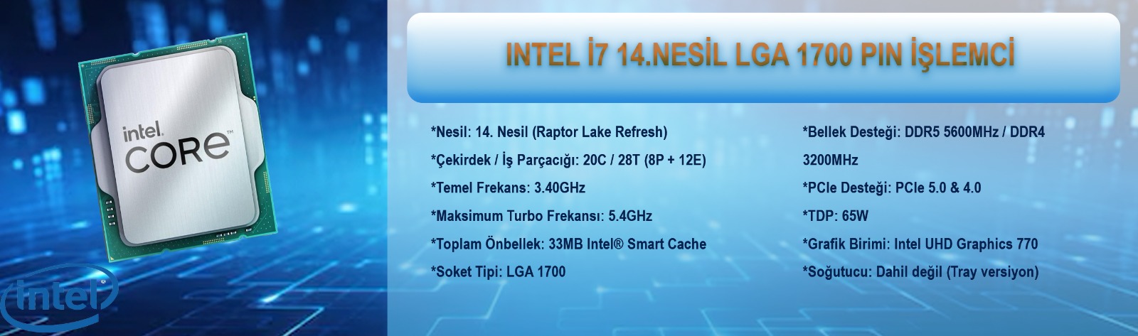 Intel’in güçlü 14. nesil i7-14700 işlemcisiyle donatılan bu sistem, giriş–orta seviye oyun performansı, hızlı çoklu görev kullanımı ve kararlı çalışma isteyen kullanıcılar için tasarlandı.