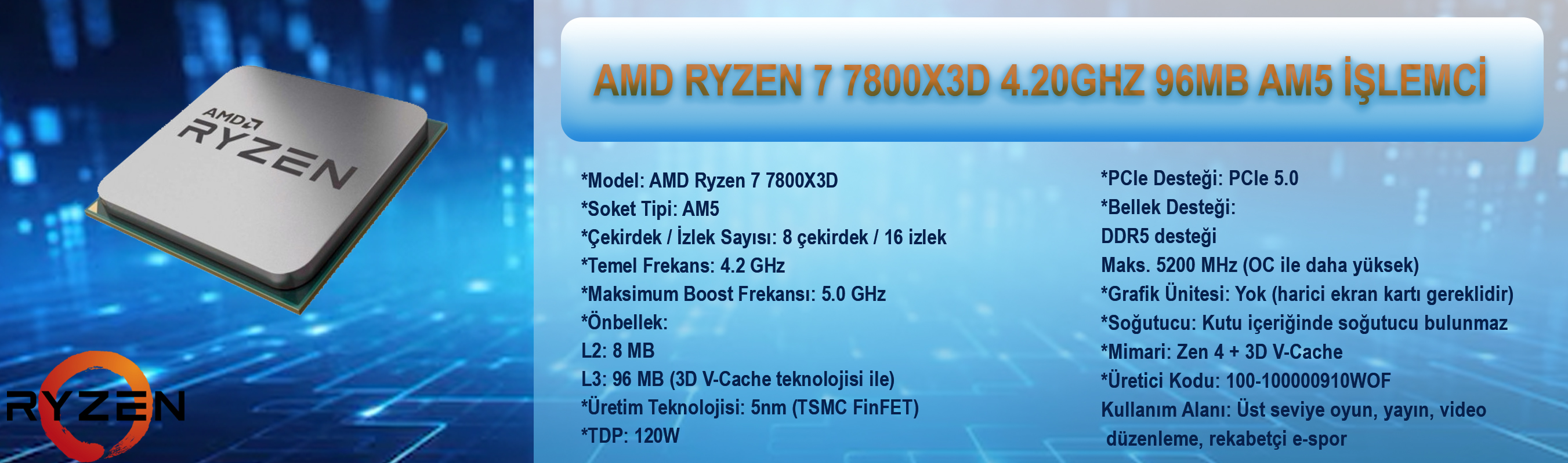 Ryzen 7 7800X3D’nin 3D V-Cache avantajı ile ekstra oyun performansı arayan kullanıcılar