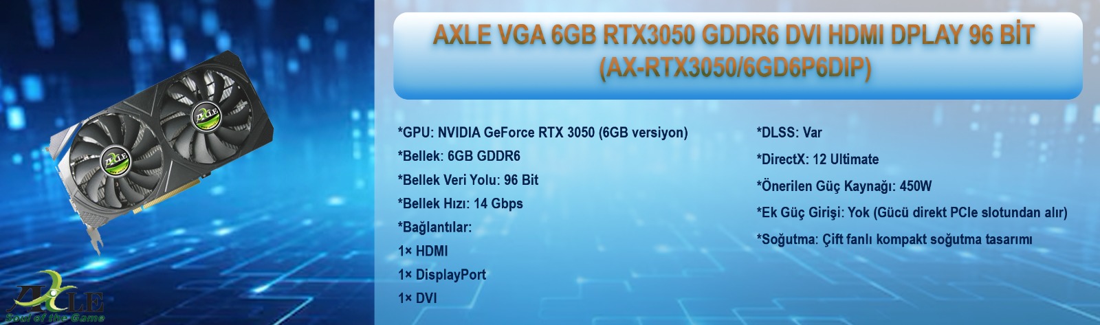 6GB RTX 3050 ekran kartı, DLSS teknolojisi ve güçlü 1080p performansıyla güncel oyunları yüksek ayarlarda akıcı şekilde oynatır.