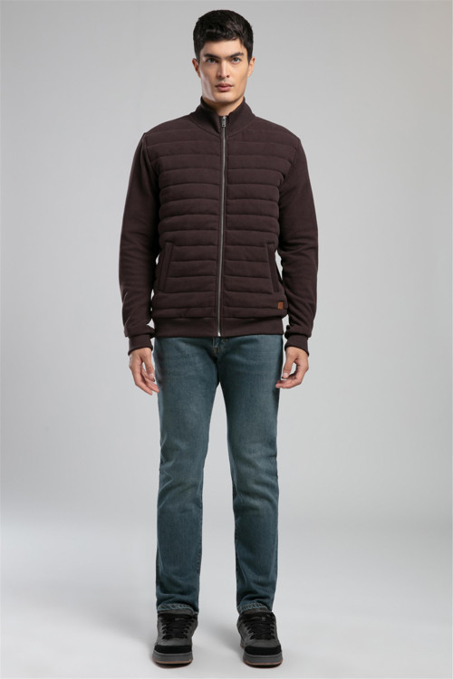 Rowena Erkek Dik Yaka Fermuarli Sweatshirt Acı Kahve